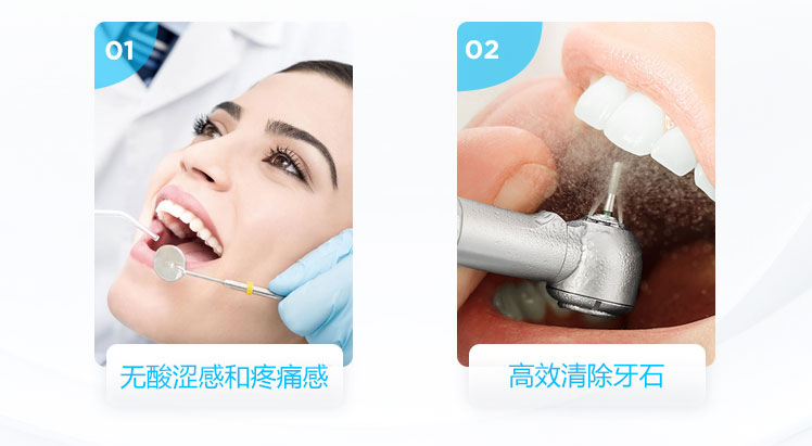 通过超声波的高频震荡作用,去除牙齿上的牙结石、烟渍和茶斑,帮助治疗牙周炎等口腔疾病,时间短,治疗方便,不会伤害到口腔健康。